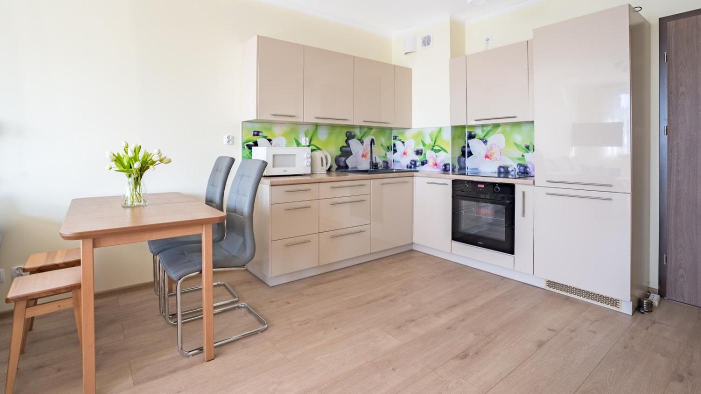 Apartament z 1 sypialnią. This apartment consists of 1 living room, 1 separate bedroom and 1 bathroom with a shower and a hairdryer. In the well-fitted kitchenette, guests will find a stovetop, a refrigerator, kitchenware and an oven. This apartment includes a dining area, a flat-screen TV with cable channels a seating area and a balcony. The unit offers 2 beds. Apartament - 4 osobowy. Powierzchnia pokoju ok.: 39 mkw.